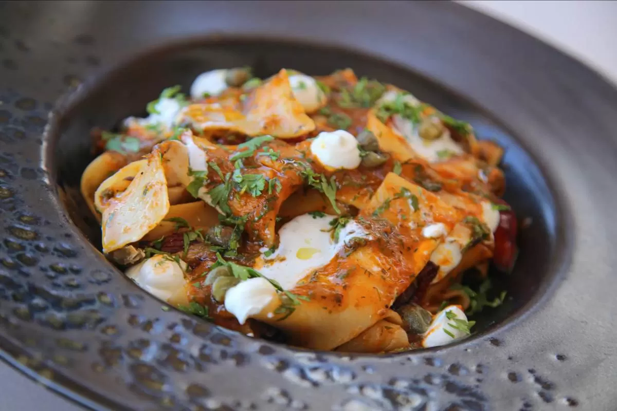 Στα μαγειρευτά ξεχωρίζουν κλασικά πιάτα όπως ο μουσακάς, το Κλέφτικο με ντόπιο αρνάκι ή κατσικάκι ελευθέρας βοσκής σιγομαγειρεμένο στη λαδόκολλα, τα γεμιστά με ντόπιες ντομάτες, και τα ντολμαδάκια γιαλαντζί, όλα μαγειρεμένα με μεράκι και σεβασμό στην παράδοση. Η προσοχή στη λεπτομέρεια και η χρήση φρέσκων υλικών κάνουν κάθε μπουκιά αξέχαστη.