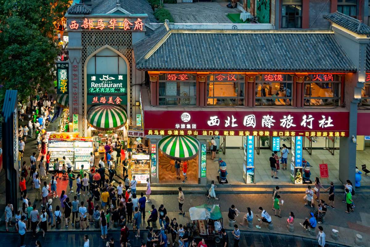 Τα στενά δρομάκια είναι γεμάτα αγορές, καταστήματα και δρόμους φαγητού, με μια ποικιλία γεύσεων που δύσκολα βρίσκει κανείς αλλού. Από τα διάσημα roujiamo (κινέζικα “burger” ) και τα biangbiang noodles, έως παραδοσιακά πιάτα όπως το “Yangrou Paomo” (αρνί με ψωμί) και σαλάτες από σόγια, αλλά και εκπληκτικά γλυκά και μπαχαρικά, κάθε γωνιά προσφέρει μια έκρηξη αρωμάτων και γεύσεων, η μουσουλμανική κουζίνα της Σιάν είναι εντυπωσιακή. Οι δρόμοι, γεμάτοι από πάγκους με φρέσκα υλικά κι αρωματικά μπαχαρικά, δημιουργούν ένα γευστικό πανόραμα που ενθουσιάζει τις αισθήσεις.