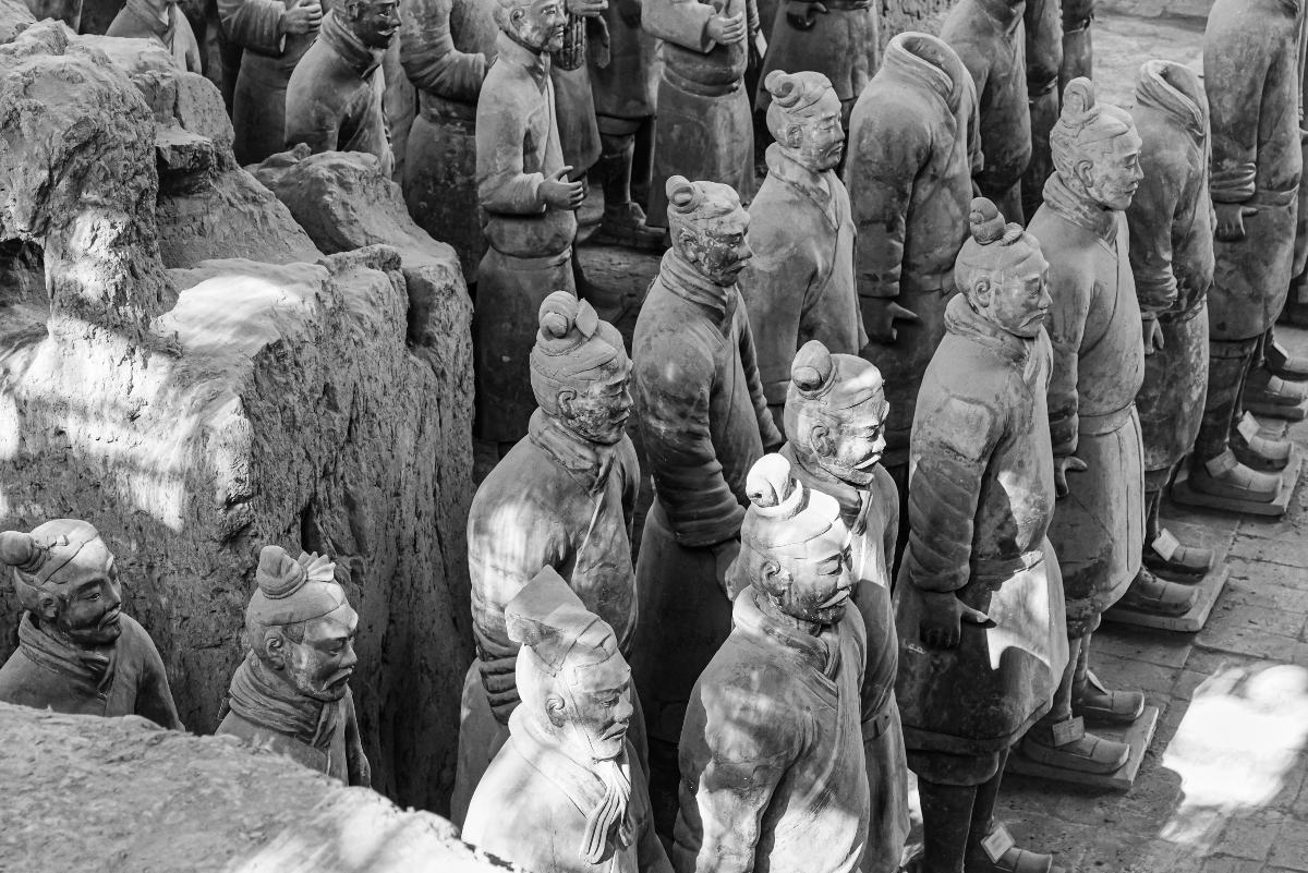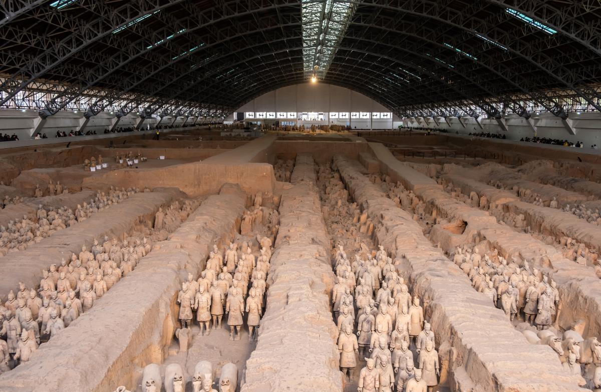 Ο Πήλινος Στρατός χρονολογείται από τον 3ο αιώνα π.Χ. και σχεδιάστηκε για να προστατεύει τον αυτοκράτορα στη μετά θάνατον ζωή. Το μέγεθος, η λεπτομέρεια και η καλλιτεχνική τελειότητα των γλυπτών προκαλούν δέος: κάθε στρατιώτης είναι μοναδικός, με διαφορετική στάση, πρόσωπο και στολή, αποτυπώνοντας την πολεμική οργάνωση και την κοινωνική ιεραρχία της εποχής.