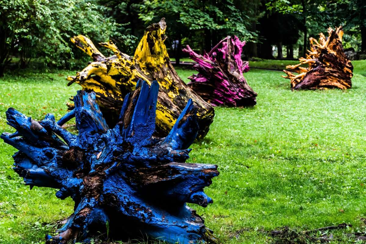 Πολύχρωμες ρίζες δέντρων στο πάρκο Dimitrie Ghica στην πόλη Sinaia, κοιλάδα Prahova, Ρουμανία