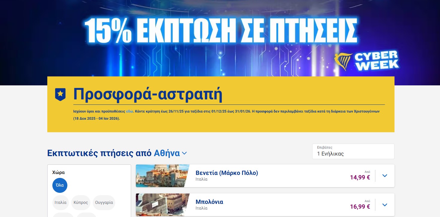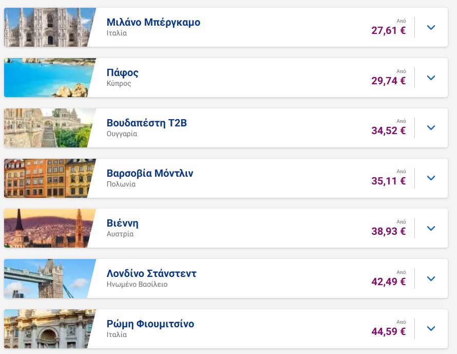 Δείτε τους προορισμούς που συμπεριλαμβάνονται στην προσφορά (από Αθήνα):
