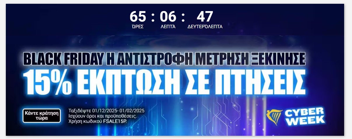 - Αυτή η προσφορά εξαρτάται από τη διαθεσιμότητα και είναι διαθέσιμη μόνο για κρατήσεις που γίνονται σε επιλεγμένες διαδρομές και ημερομηνίες.