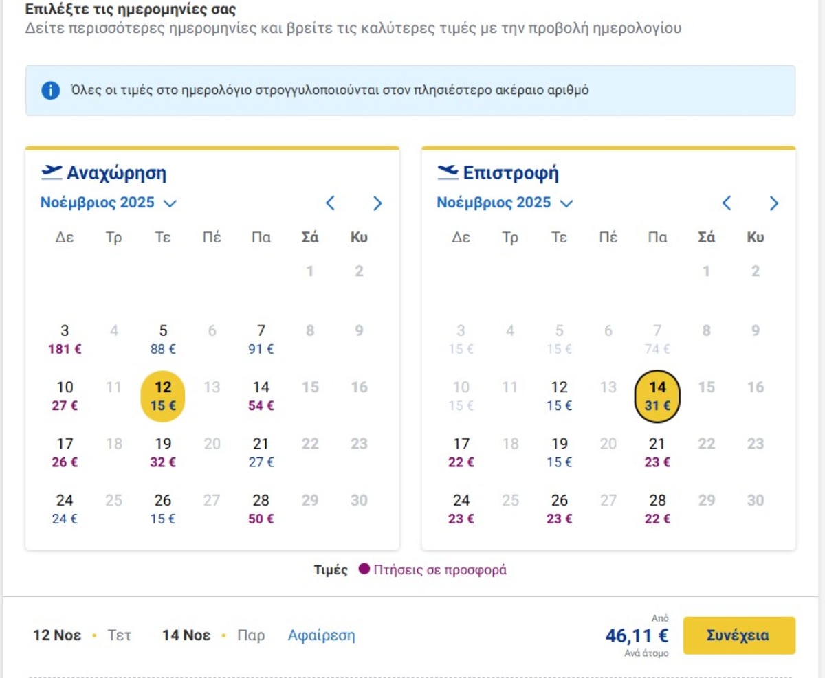 - Αυτή η προσφορά εξαρτάται από τη διαθεσιμότητα και είναι διαθέσιμη μόνο για κρατήσεις που γίνονται σε επιλεγμένες διαδρομές και ημερομηνίες.