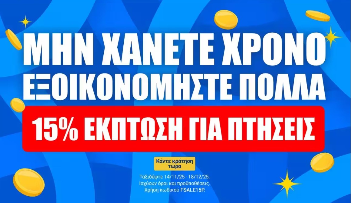 Φθηνά αεροπορικά εισιτήρια για οικονομικά ταξίδια! Κλείστε αεροπορικά εισιτήρια μέχρι και σήμερα τα μεσάνυχτα 13/11/2025 και εξασφαλίστε φθηνά εισιτήρια για ταξίδια από 14/11/2025 μέχρι και 18/12/2025, σε δημοφιλείς ευρωπαϊκούς προορισμούς όπως η Ρώμη, η Βουδαπέστη, η Βιέννη και η Μπολόνια.