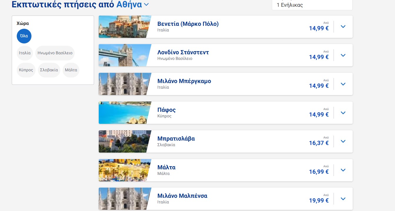 Δείτε τους προορισμούς που συμπεριλαμβάνονται στην προσφορά (από Αθήνα):