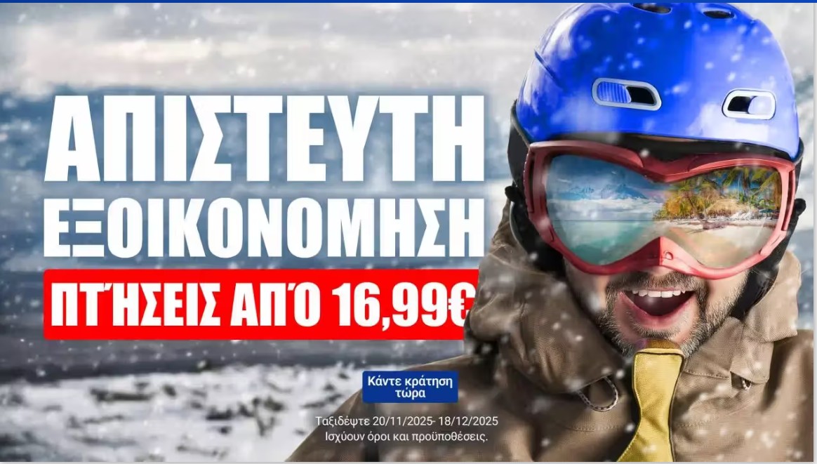 Φθηνά αεροπορικά εισιτήρια για οικονομικά ταξίδια! Κλείστε αεροπορικά εισιτήρια μέχρι και αύριο τα μεσάνυχτα 19/11/2025 και εξασφαλίστε φθηνά εισιτήρια για ταξίδια από 20/11/2025 μέχρι και 18/12/2025, σε δημοφιλείς ευρωπαϊκούς προορισμούς όπως η Βενετία, το Λονδίνο, το Μιλάνο και η Μπρατισλάβα.