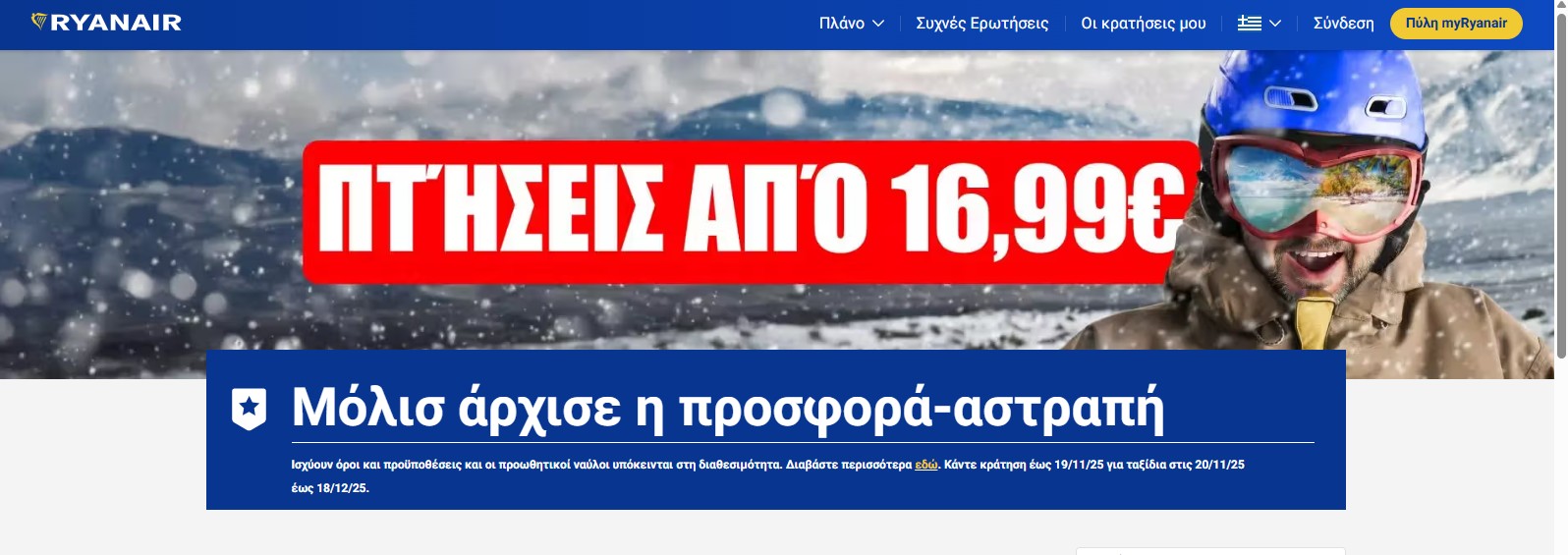 - Η προσφορά δεν ισχύει όταν η προσφορές «Αγοράστε ένα, Αποκτήστε ένα δωρεάν ή Αγοράστε ένα, Αποκτήστε ένα στη μισή τιμή», ισχύουν στο Ryanair.com.